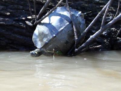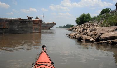 2012-05-18 tl;dr: I've finished with the Ohio River and am now paddling up the Tennessee River. The Ohio River dropped another three feet or so while I was in Metropolis.The Ohio River is fun and all, but I am finished with it. At Paducah I took a right turn onto the Tennessee River. I am now on the 4th most polluted river in the country, which is not intuitive considering how clear the water is. I forgot how nice it is to be able to see down to the tip of my paddle. Speaking of pollution rankings, I've already hit the 1st (Mississippi), 3rd (Ohio) and 11th (Rock). Somehow, even though it is Chicago's drain pipe, the Illinois wasn't ranked. I talked to a number of fisherman today. And a kid at the Paducah public boat landing informed me that "ahoy" was the only proper greeting when on the water. The Tennessee River may be the busiest river I've yet been on. There are barges and fisherman coming and going. Even finding a campsite was a bit of a challenge. And then two fisherman show up in their boat and anchor right in front of me. That's just awkward, and not at all necessary; this river may be smaller than the Ohio, but it's still huge. |