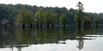 2012-05-21 tl;dr: Another few days of paddling ends in New Johnsonville. It's hot. The weather, not the town. I didn't sleep too well, again. I think I pulled a muscle or something dragging that kayak over the Kentucky Dam. It was finally quiet, though. I guess the fishing tournaments are over.The forecast had called for a decent north wind, so instead of trying to find a hotel yesterday I decided to push on another day and take advantage of the wind. What a waste. A slow tailwind is much worse than a moderate headwind--especially when it's hot. Of course it's hot; I'm in the South. With a slow tailwind you effectively have no breeze at all, because the air is keeping up with you. The lake still keeps most of the clouds away. Had I not needed to get some work done, I probably would have stopped early today. Instead I pressed forward in an ibuprofen fueled haze to the town of New Johnsonville. I suspect I will be paying for this. The Anchor Inn in New Johnsonville was my final destination. I was able to pull my kayak right up to my room, which was next door to a lady who I suspect did not have soda in that big styrofoam cup. She in turn was next door to a black guy who had a loud radio playing badly skipping CDs as he packed his truck, because he finally found an apartment that was cheaper than the hotel. Colorful folk. The town sheriff is hiding in the parking lot to catch speeders, so I'm sure all will be well. It seems I scraped off my keel patch. That explains all the water in my kayak. Fortunately I had filled the back of my kayak with bar top resin. Unfortunately it still let some water through, and I seem to have lost my sponge. Guess I have more work to do. |
