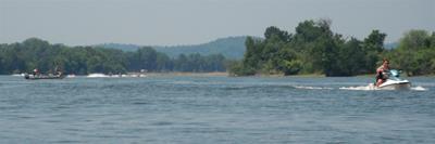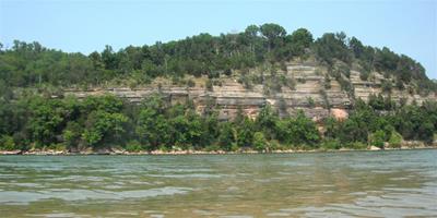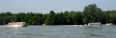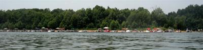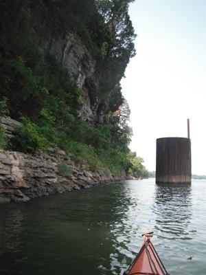 2012-05-26 tl;dr: It's Day 2 of Memorial Day weekend on the Tennessee River. There ain't no party like a pontoon boat party. Folks here sure like pontoon boats. There wasn't the variety of boats I saw last weekend, but I think the count may actually have gone up. Pontoon boats mostly, with a good number of speed boats. The slight breeze should have left the water smooth. But it was a choppy mess. Water that should have been clear down to two feet was nothing but murky orange mud.The pontoon boats would swarm, and then they'd congregate on stretches of remote beach. I enjoyed paddling along these beaches with all of the comments that came with that. "It's a canoe!" is still ahead of "It's a kayak!" by at least two to one. Starting around southern Illinois the locals' accent started to veer from what I'm used to. Here in central Tennessee I am totally missing about half of what people say. I feel bad about that. Now that I'm almost on an actual river, one side or the other is almost always a cliff face. Very picturesque. It was hot today, but there was a breeze, so it wasn't too bad. In anticipating it being hot all night, I was fortunate enough to find an unused (and unmaintained) picnic shelter. I set up my mat on one of the tables. I hope there isn't a problem with bugs. The antlions should help with that. There is a problem with bugs. Back into the tent I go. |