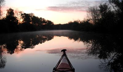 2012-04-23 tl;dr: Grown tired of the locks on the boring Hennepin Canal, I took a detour. My boredom was certainly cured. What a day. I may have used every major muscle group. Twice.It was cold last night. Accordingly it was cold this morning. I packed up camp and was back on the Hennepin Canal before sunrise. After putting my kayak back into the canal I noticed the water which had splashed over the bow was now frost. Why do I do these things? Today's plan was to take the Hennepin Canal all the way to the Illinois River. Never let it be said that I don't change my mind. And then regret it. After paddling for an hour or two through those boring canals I arrived at Lock 21. Because Lock 20 was within spitting distance I portaged around both without putting in the water. That was a tough drag because I simply pulled the kayak by the fore handle. My kayak is heavy, what with all my gear in it. I then portaged Lock 19, and then 18. Dragging was easier because I connected a rope and a sling, but my legs were burning. Locks 17, 16 and 15 were so close I portaged all of them at once, dragging through gravel and grass. Getting in and out of the water is not fun because there are no landings. Portaging these locks is a pain. At Lock 14 I decided that if I was going to drag my kayak I'd do it on my terms. So I dragged it across the road, across the railroad tracks and down into Pond Creek. Pond Creek certainly isn't big enough to enable full-time paddling. But the water was clear and the bed was sand and gravel, which was a welcome relief from the mud thus far. There were occasional deep pools filled with schools of darting fish. Let me refrain; pools filled with carp. Dragging wasn't nearly as much of a chore here, but I certainly did more of it. Constantly exiting and entering the kayak was equivalent to doing reverse press ups. And because my kayak is not built for fast water I got a good workout attempting (and sometimes failing) to control it. As I paddled, pulled and skidded downstream the water grew incrementally deeper. And the carp bigger. I've never seen so many carp. Perhaps carp are universally this dense, but normally hidden due to the opaqueness of their environment? Eventually Pond Creek merged with Big Bureau Creek and I was able to spend more time paddling and scaring up carp. Big Bureau Creek meanders. It's the meanderingest stream I've ever paddled. It never got too deep, though. Most of the run it was only twelve to eighteen inches deep. Anything under twenty-four inches is actually hard to paddle in due to viscosity. Keep this in mind. As Big Bureau Creek meandered and meandered I longed for its eventual discharge into Goose Pond, which fed into the Illinois River. I could get some depth and pick up the pace. Once to Goose Pond the going would get easy and I should be able to make it to Henry before dark. Once to Goose Pond the going got really tough. Big Bureau Creek widened and thinned out until it was an inch deep. Okay. I would just drag my kayak over the sand to the deep water. A hundred yards out into Goose Pond the water wasn't any deeper, but the sand had given way to silt and mud that sucked up past my ankles. Another fifty yards found me in despair, because I could no longer actually walk through the mud. So I climbed back into the kayak and pushed myself along with my hands, as the paddle was useless. My arms didn't last long at that exercise, so I reverse straddled the boat and pushed myself along with my feet. By this point I may have gained another inch of water, and I was coated in muck. The boat still wouldn't drift, and my legs were growing tired. I was a quarter mile from shore, but stranded in mud. Fortunately a good stiff wind was to my stern. I could no longer actually get out of the kayak for fear of sinking into the mud, so it was an ordeal emptying my fore hatch and unpacking my sail. It was even more challenging mounting that homemade sail (that never worked very good in the first place). But the wind caught it and I started to slowly slide through the mud. I had to lay on my back and manage the sail lines with my feet to keep the sail from folding over. Slowly I made my away across Goose Pond to its junction with Senachwine Lake. Where I got stuck again! Two inches of water! But nowhere near a shore. Apparently there is a channel between the two lakes. Someplace. I secured the sail better and began pushing with my hands, and then my feet again. For a while I doubted I'd ever find deep water, and I started wondering if the local authorities had an airboat, because nothing else could reach me. But eventually the water deepened an inch, and then another. And I was drifting again. After another mile I had maybe a foot of water. I started paddling and, with the wind in my sail, was able to pick up some speed. I sailed and paddled across the four miles of Senachwine Lake as the sun slowly settled. I exited the lake in twilight, and by the time I made it to the Illinois Rived it was dark. I stayed close to shore where the water was still shallow, but the bed sandy, and kicked up one carp after another. I would have taken some pictures, but it was too dark. Around 9 o'clock I drifted into the marina at Henry, Illinois and dragged myself up to the Henry Harbor Inn to get a room. I am wasted. Goodnight. |