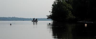 2012-05-15 tl;dr: I continued dodging carp and chasing eagles all the way up to Metropolis. I don't know if I've mentioned this before, but camping along these rivers is great. Other than those towboats and occasional animal cries it is all very quiet. And due to my isolation I never have to concern myself with "stranger danger". There is almost nobody on these rivers during the day, and even fewer at night.It was pretty hot today. Fortunately a continuous procession of leaping carp kept me well splashed. I lost count of how many went over the deck. Some cleared it by a good three feet. Another almost landed in my lap, but I had an open container of granola that I didn't want fish slimed, so I batted the carp away. I really wanted to get a picture of those carp, but that proved impossible. I came across some catfish trappers. They were hauling a trap out of the water as I arrived. There were a bunch of little guys and one great big catfish that could have weighed forty pounds. It's hard to see in the picture. The day was spent chasing eagles upriver, scaring turtles off their logs and dodging carp. I saw a coyote and some deer, both of which gave me a good long stare before deciding I was worth running away from. I had to cross the river again to get back on the north shore. Unlike when I was on the Mississippi, I have to make a real effort to cross the Ohio River. Not only does it take a good twenty minutes, but I have to fight the current or I end up downstream. I stopped at a hotel in Metropolis where I will spend a few days before continuing on. |