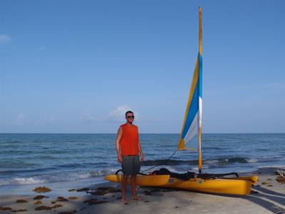 2012-07-08 tl;dr: After only two days of "sailing" I've stopped at another hotel, the Sportsmans Lodge. This place is great. It's sort of ironic. My trip down the rivers was supposed to be the boring prelude to my awesome sailing adventure. It turns out the rivers were interesting (all things considered) and sailing kind of sucks.Or maybe it's because the temperature never drops below eighty degrees, even at night, and sand creeps into everything, and the wind never cooperates, and I'm still discovering patches of skin to sunburn, and my water tastes bad, and everything I own has a layer of salt on it, and my favorite pocketknife is almost a lump of rust, and I've burned through two expensive mp3 players, and the cheap one I just purchased isn't very good. I had no wind whatsoever all day long until mid-afternoon. At one point I set the sail and poked across the water while casually making peanut butter and jelly sandwiches. Then, all of a sudden, the wind shifted and kicked up. I finally felt like I was sailing. Ho hum. Though I only put in two days of "sailing", I decided to stop. Work is ramping up again, and, besides, haven't you been reading? So I stopped at the Sportsmans Lodge in Eastpoint. This place is great! It is classic Florida. The Lodge is actually several groups of multi-room buildings surrounded by vine-covered trees and palmettos. There are RVs parked all about. What's left of a marina boarders one side, and East Bay the other. A flock of peacocks patrols for scraps, and squirrels raid the breakfast lobby, which is sort of a gazebo. The tap water has more than a hint of sulfur, and the only non-closed restaurant within walking distance is a Mexican joint. |