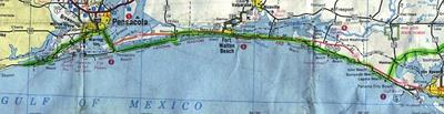 1999-11-07 In started today's journey someplace between Youngstown and Bennet, Florida. I followed 388 all the way to 79. Along the way I saw many pine trees. I also saw the most peculiar garbage along side the road. It consisted of banana peels, powerbar and calorie gel wrappers, and hundreds of discarded water bottles, many sporting the TimeX or Gatorade logo. I saw one intact Power Bar sitting to the side of the road and the temptation was too great. I studied it for a second. It looked good so I picked it up and put it in my handlebar bag for later inspection. However, the Power Bar did have a flaw. The package had a tiny hole in and an entire colony of fire ants had taken up resident inside. Well they weren't inside anymore. I got bit several times on the hand and spent the next mile or so knocking them off my bag with a stick. Needless to say I stopped looking for a free meal.Also along the road were chalk markings giving inspirational messages such as "You can do!" and "Getting there, getting there, Go!" There were paper signs below road signs saying, "Jeff, cold beer ahead" and "cheese burger ahead." I thought, dang, I wish a cheese burger was waiting for me. I turned south on 79 and stopped at a gas station. There I met a guy named James who lived in Waukesha 13 years ago and currently has a cousin named Holly going to MSOE. Small world. He still retains his Milwaukee (ya, der,hey) accent and informed me that just yesterday there was an Iron Man competition following the route I was on. I also bought a microwave cheeseburger. So I followed 79 south with anticipation of seeing that great blue horizon of the Gulf of Mexico. Soon, I did see such a blue horizon at the far end of the road. I almost stopped and took a picture. As I got closer it looked more and more like the ocean when suddenly it turned out to be the roof of a Chevron gas station. In fact, when I reached the end of the road, even though the coast was only a couple hundred yards away, I still had to travel a good distance before I could see it because of all the resort buildings and stuff. So for the next many miles I was flanked by cement brick-build shacks, houses and resorts in a variety of pastel colors. Occasionally I would catch glimpses of the ocean and it's white beaches. There were also a lot of No Trespassing signs. But these were usually on land that nobody in their right mind would consider trespassing on with out a bulldozer or monster truck anyway, because the brush was so thick. After turning west off of 79, I'm not sure what road I was on, but before long I got on 98 and then 30A and then back on 98 again. I followed this through Destin and am now planning on camping on the island between Destin and Fort Walton Beach. I'm on the north side of the island because the south side is fenced off and patrolled by the air force. I saw no such signs where I am now, but I realize I could still get kicked out. I plan on sleeping without a tent tonight just to be on the safe side. Hopefully the critters on this island aren't too bold, although as I sit on the beach typing away, storks (?) and sand pipers (?) have no shame of walking right past me. I'm not sure as to my mileage today. Maybe somebody else can work it out. There is also a lot of neat stuff washed up on the beach here. I was thinking about just grabbing some of it and getting a head start on my Christmas shopping. So who wants a great big dead jelly fish? Or what looks like a barnacle-covered eel? One thing I like about this part of Florida is nobody ever cares about your accent. It's probably because everybody has a different one. And that's probably because all the tourists. There sure are a pile of them, even now. If you add up all the bicyclers I saw since leaving Milwaukee, the number wouldn't come close to what I saw today. But most of the bikes today were these awkward rentals. |