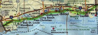 1999-11-10 As many of you know, I've finally found myself in a hotel.This morning saw me traveling west on 180. I'm thinking I should have paid more attention to the names on all the shacks and hotels along the way, because every one seemed to have a unique name. Even the dumps nobody would care about. I guess it's a status thing here. As I waited for the ferry at Fort Morgan, I admired the thousands of sea roaches (for lack of a better name) as they climbed around on the rocks. Each one was an inch to an inch and a half in length. I took the ferry over to Dauphin Island. Along the way there were dozens of oil rigs, and numerous species of birds. I think my favorite bird in the south is the pelican. It's an awkward looking bird, and it flies like I bike: pump, pump, pump, glide. When I got off the ferry I met a group of over a dozen bicyclers getting on. Unfortunately, I didn't have the opportunity to talk to any of them. But later, I met two guys from San Diago. They were outfitted like me. One looked to be fifty-something, and the other younger. The younger one even had the same bike and trailer as myself. They claimed to do only 55, 65 miles a day, and sometimes 90. And they slept in hotels just about every night. Indeed, the younger one looked very "healthy" even after all the miles they had done. They warned me that the traffic on 90 was harsh and there wasn't any decent margin to ride in. I found this to be mostly true, but not wanting to ride on the rough pavement at the edge of the road, I rode at the side of the road, but not too close. I've found that if I hug the edge of the road, people will pass me like I'm not even there, sometimes with inches to spare. But if I move out into the lane 2 or 3 feet, cars and trucks give me an extra wide berth. I do have to be careful, because then some of the larger trucks can't pass me at all, and they get bugged. But better them bugged than me flat. From Dauphin Island, I followed 193 to 188 to 90 and on into Mississippi. I looked hard but could not find Mississippi's welcome sign. I know I was looking in the right place because I found Alabama's "Alabama State Line" sign. Maybe they don't have stqte pride down here. I followed 90 through Pascagoula to Biloxi where I saw about half a dozen large casinos. I was tempted to stop at one because I heard they sometimes have great room rates, but I would have felt weird pulling my bike through their shiny lobbies. I eventually got myself a hotel room with a sliding glass door and a jacuzzi. It has a decent rate, and I think if I were to go to the casinos, I would get a discount. I probably should have taken a shower before soaking myself because I left a ring around the tub. |