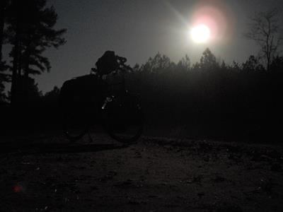 2009-02-09 People down here say "sir" a lot. "Yes, Sir." "No, sir." "Whatever, sir."People down here don't say "soda". Today at a diner for lunch I held up my glass and asked the waitress if I could get another "hit of soda." Waitress: (blank stare) Me: ... "Coke." Waitress: "Right away, sir." In other news, it may be that I am guilty of promoting a "Spotlight Fallacy", but I swear that a disproportionately high number of my trips start on a full moon. I was reminded of this as I packed up camp this morning long before daylight without once using a flashlight until it was time to double-check everything. If true, what could this signify? After the most convoluted bike route ever I found myself checking into a hotel in Newberry around noon. So I can hear you saying: "what a wimp!" Be that as it may, I have a good reason for stopping for today (and tomorrow). Some of you already know this, but it is my sincere hope to invoke jealousy in all when I say: it was time for work. That's right folks; this time I brought the job with me. I need to spend a few days every week hunched over a laptop in a hotel room. But the rest of the time I am free as a bird. Free as a bird that doesn't have to dip into savings, that is. |