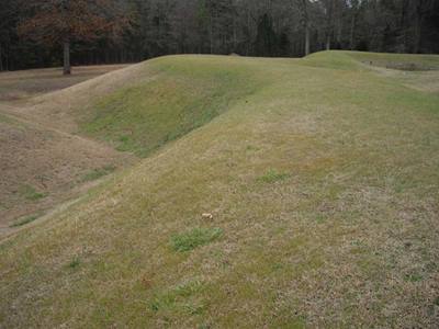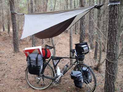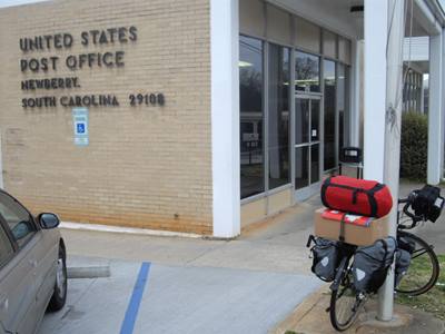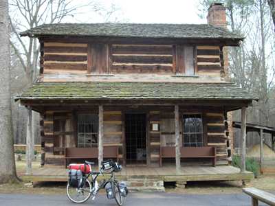 2009-02-11 First thing today I dumped some of my dead weight at the post office. That seemed to make a big difference in the amount of effort I exerted. Or maybe my muscles are starting to get a clue.The road to the town of Ninety Six was pleasant enough if you managed to ignore the logging trucks. Just south of Ninety Six is the Ninety Six National Historic Site. (Look it up on wikipedia.). As far as historic sites go it seems a work-in-progress. But it was an educational experience nonetheless. It certainly reinforced my belief that our ancestors loved digging. They would often dig a bunch of trenches, and sometimes they would even fill them back in again. This day's travel was dominated by high winds and numerous hills (granny gear FTW). After Ninety Six I stuck to back roads (mostly not quite so back roads as in the picture). Back roads in South Carolina are a joy. Very little traffic. It's probably because there are so many of them. I ended the day back in Sumter National Forest; the southern segment, near Saluda. I stopped a little early as I was afraid that suitable camping sites would become more rare once I left the forest. Just as well, as the rain predicted for tonight has already started. It should be interesting sleeping in a swinging hammock. Stay away motion sickness! Stay away! |