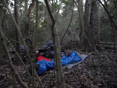 2009-03-07 Even after the worst night of sleep ever it is slightly disconcerting to wake up and not worry about whether your water bottles are frozen or not.I don't know why, but I have found that many of these island communities have very narrow roads. Under these conditions I really need to push myself out into the lane; otherwise the fat cats in their four-wheel status symbols give me about four inches of clearance as they zoom by at eight miles per gallon. It seems non-intuitive, but the more road I claim with my bike, the more space people give me when they pass. Now this rule-of-thumb can backfire in small, isolated rural communities with women drivers (just saying--you tend to pay attention to these things), so be careful. A ferry brought me to Jacksonville Beach where I got a hotel and met with a customer later in the day. This is the first warm weekend this city has had so far this year, so things are a little crazy. I finally bought a new kick stand. Finding a decent map of Florida is proving to be more challenging. |