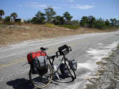 2009-03-16 I visited some of our customers at PGA. They may now be reading this. So I guess nobody had better say anything else disparaging about my job.I took a road that didn't exist on either of my maps. While coursing through orange groves I spotted a road kill pig. It was as big as a cow. I was a little scared. For some reason many of the canals here have canadian goose decoys floating in them. Highway 1A through me a curve today by splitting and not telling me. I ended up on Highway 1, which was no fun. When I eventually consulted my map I noticed some roads through Jonathan Dickinson State Park. So after ducking under a "Restricted Access" sign I found that the roads (as there were many) were quite pleasant. Apparently the whole park is an abandoned army training base. Eventually I found a road that was not restricted, but labeled "bike path". I very much enjoyed this route until it ended at a golf course and I was forced to backtrack and then walk my bike along a railroad for a mile. It was my goal to camp out, but the only really private patch of forest available to me was choked with impenetrable mangroves. So I'm in a hotel. |