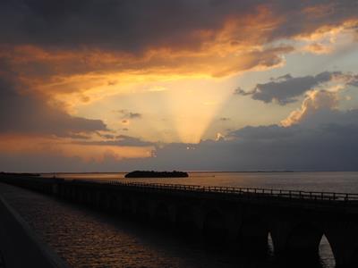 2009-03-21 My morals continue to spiral. A portion of my breakfast was a stolen tomato. It tasted so good. Seeing how the tomato fields stretched about as far as I could see, it shouldn't be missed.After leaving the Everglades this morning it was another twenty-five miles (Google maps saved me some miles by directing my down off-limits gravel roads through protected habitat) before I actually reached the Keys. Then it was another sixteen miles before I saw the ocean again. Most of the keys have pretty good bike paths, just like further up the coast. One big difference is the size of the skittering lizards. They can be a foot and a half or more here. I had an almost perfect tail wind which caused me to just chew up the miles. But as I cruised along I couldn't help but think to myself: I walked all of this? What was I thinking? I found many locations that I remembered from my last trip here. And I remember being tired and sore at every one. I had one close encounter today with a car. A police car. Sheriff actually. I'm pretty sure I had the right-of-way (I was going straight and he was turning), but he did his best to convince me otherwise through use of a menacing glare. I didn't do a very good job of applying sunscreen this morning. I missed a spot on my left shoulder. Looks like I have a rash. And it burns. There seems to be a booming business in t-shirts--3 for $10. I guess that is all you can afford by the time you've paid for food, gas, and lodging in this place. I managed to get to mile marker 39. Key Largo starts at around MM 118. I should make it to Key West pretty early tomorrow. On the off chance that rates might be reasonable I stopped at a motel. After hearing the rates, I commented that I'd be camping after all. The helpful clerk proceeded to outline my options for "camp sites". He obviously has not read my blog. I did manage to find a very hidden (I hope) spot just off the road in some low trees. I got my hammock set up just before it started raining. Unfortunately I must be close to a tidal flat, because it smells pretty bad. |