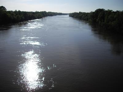 2009-04-16 Today was actually kind of boring again. The roads were nice. Traffic was relatively light, and I'm given lots of space. The constant green of Spring was refreshing, but reminded me more of home than anything.I think I may be nearing the end of this trip. There are definitely more places I'd like to visit, but I'm not sure if I want to spend days (weeks) biking there. But, then again, I don't have anything else to do. I still have time to think it over as there is no possibility of extraction before Mississippi. The only sort of interesting event today took place soon after climbing into my hammock. A wild pig came trotting down the trail almost to me before snorting loudly (a real pig snort--not a deer "snort") before rushing off into the brush and thrashing about a bit. Eventually it went away, but it was hard to tell when, because by this time the guitar-frogs were in full chorus. |