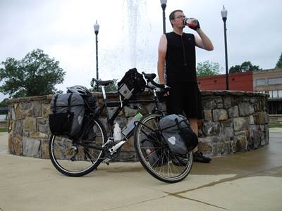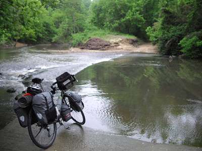 2009-05-02 Work has finally caught up with me. I am affecting a course change that will put me at a customer site next week.Is it just me or are McDonald's breakfast sandwiches and hash browns getting smaller? I have finally left the crazy people of Hot Springs behind. And I mean crazy in the medical sense. Using Google Maps to plan your route doesn't always work out. Somehow I ended up in the middle of a giant forest crisscrossed by dirt logging roads. At least I didn't have to deal with any cars for the few hours I was in there. I had to stop multiple times today as storms rolled through. Between the humidity in the morning, the creek crossings in the forest roads and the rain storms the rest of the day, I never did quite get dry. At my last stop in Mineral Springs I was given free ice cream, though. I am camped just south-east of Mineral Springs. I am effectively in somebody's yard. At one point I thought I was discovered as a couple of vehicles pulled into the long driveway and stopped momentarily. Later, a tree or large branch crashed to the ground not far from me. I hate it when that happens. Follow up: I didn't sleep too good what with the near constant lightning, thunder and heavy rain. |