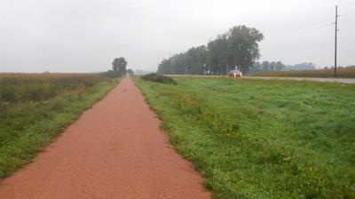 2015-09-25 tl;dr: I started off on the Cowboy Trail, but switched to the highway because the trail was too soft. I didn't sleep all that well. I kept thinking that even the rain their were folks prowling around my sleeping bag. According to tracks I found in the mud in the morning, I think there were.I left Norfolk, Nebraska on the Cowboy Trail at 5 AM. In the dark. And rain. No part of me is dry. I ate an awesome breakfast in Tilden. After Tilden, I pretty much gave up on following the Cowboy Trail. The trail is made from crushed gravel, and thanks to all the rain it is soft and rutted. The trail follows the highway very closely, and the highway has an eight-foot shoulder. Traffic isn't too bad, so I'm just taking the highway. I wish it would stop raining! For the most part the highway shoulder is pretty smooth, but I hit a stretch where the pavers obviously didn't take their job seriously. After a while my rear tire felt off. Inspection revealed two broken spokes. Now I don't know if I received a bad batch of spokes when I built this bike or if I'm just a horrible tire builder (I suspect the latter), but I'd previously broken three spokes on this trip. I am rapidly burning through my spares. This part of Nebraska is dominated by hay fields. The round bales are numerous. For some reason, a lot of frogs are attempting to cross the highway and failing. I've never seen so many dead frogs. More broken spokes! I don't know what I rolled over, but I broke five more spokes on my rear tire. I was able to replace three. Now I'm actually running on a spoke deficit. I stopped in a hay field. I wasn't going to set up a tent, but mosquitoes kept biting me and then it started raining. Again. I biked 89 miles today before giving up. |