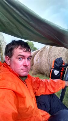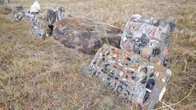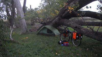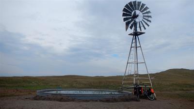 2015-10-02 tl;dr: Cold, windy, wet, I traveled the sand hills and visited Conley Flat Cemetery. Maybe it was my habit of drinking water from unverified sources, or maybe biking all weekend in the rain had something to do with it, but I was pretty sick this week. I decided to delay my usual long weekend until Friday.I fixed up my tire and lubricated my brake lines. I should be good to go. I still have sand burs embedded in various parts of my body. It was windy and cool, but still fairly nice out when I left Valentine. There was even a little sunshine. That wouldn't last. The wind is crazy-strong, but is behind me for the most part. I took the "Bridges to Buttes" highway into Mountain Time and on to to Cody, Nebraska before finally departing the highway for a while. I turned south into the sand hills. Taking back roads through the sand hills is worth a side-trip. As the day progressed, I managed to weave my way between rain storms, but that was not to last. I took a break between some round bales that didn't really keep me dry or out of the wind. A little ways down the road the rain picked up even more when I spied a bus surrounded by junk in a cluster of trees. I was able to open the door, so I waited out the rain in an old RV-conversion bus that absolutely stunk. It was really bad. Squirrels and other rodents have had their way with this place for years. I avoided touching anything. Further along, I ended up at a point on my map that I had failed to label to find Conley Flat Cemetery, a fenced in cemetery that is locked from the inside. I'm kind of glad I didn't label it, as I may decided against taking these back roads to see a cemetery. The gravestones here are not crazy old, but some are constructed from cement and colored rock, and others are just petrified wood. My goal at this point was to find a camping spot out of the severe wind. This country has no wind blocks whatsoever save a few scattered pine trees. I was back on the highway before I found some trees in a pasture. My tent was set up and everything thrown in just minutes before the rain started in earnest. It was cold, windy and every layer I was wearing was wet. Unfortunately, in this situation the only thing you can do is climb I to your sleeping bags with all of those wet clothes on, because otherwise the clothes will be even wetter and colder come morning. Also (as I've learned through experience), if your sleeping bag is warm enough your clothes actually dry out while you sleep. |