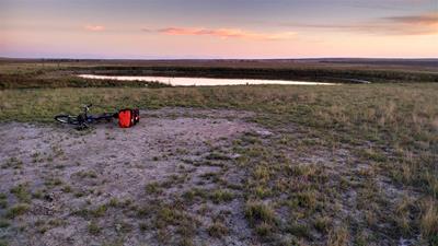 2015-10-07 tl;dr: I skipped out on work and biked across the Oglala National Grassland. I was supposed to work, but it was sunny, and it was warm. So I checked out of my hotel early and hit the road.Today brought me across the Oglala National Grassland. This may be the first "national grassland" I've visited that actually has grass. Usually these grasslands are filled up with trees. Also, there are no towns and almost no ranches along this route. I did not bring enough water, but I did get to see plenty of critters. I was on no busy roads today. Even the paved highways only produced a car every fifteen minutes or so. But half the day was spent on dirt roads. As I crossed into South Dakota, the road ran along side a railroad track. I was passed by more trains than cars. This track has a lot of trains. As it was growing dark, I knew I wasn't going to find anything approaching a shelter, but I hoped I wouldn't need it. So I found a spot out in the grass and laid out my sleeping bag. |