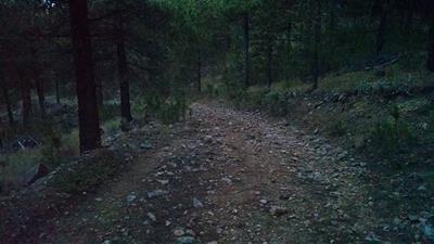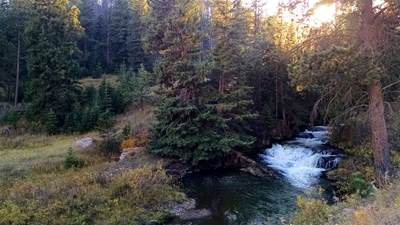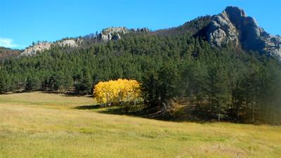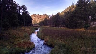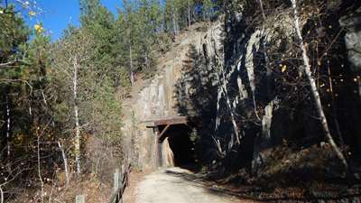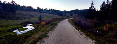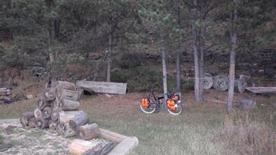 2015-10-10 tl;dr: I left Custer State Park and continued north on the Mickelson Trail. It was so warm last night the temperature never dropped below the dew point. A pleasant surprise. That wouldn't last. After navigating the rocky Fisherman Flats Road and starting down the mountain, the temperature dropped dramatically. It is always warmer at the top of a mountain for some reason.My goal was to visit the Needles Highway, but the road was closed due to construction. While I was debating just how closed it might be, three dump trucks passed by. I decided it was pretty closed, and so I biked over the Galena French Creek Divide directly into the city of Custer. There is a bicycle path along this route, but whoever made it obviously had never peddled a bicycle, so I took the highway's shoulder for most of the distance. In Custer I rejoined the Mickelson Trail heading north. I met other cyclists on this trail, but nobody that wasn't local. I kept on biking long past my ability to focus my eyes on the trail, because I figured the higher elevation I attained, the warmer it would be. I ended up setting up camp at 5600 feet near an old mine. I think my theory needs refining, as it is already cold. |