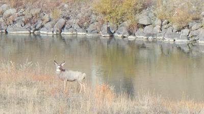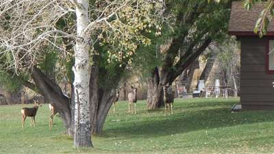 2015-10-28 tl;dr: I peddled from Craig to Meeker, Colorado, where I will stop for a few days because I am a wimp. I don't know what is worse, the cold weather or the fact that I'm getting used to it. Even so, peddling (and walking) over Yellow Jacket Pass, I had to put on another layer even as I got the warmest part of the day. 7000 feet is still kicking my butt, though.Mule deer must be in rut now. I saw bucks in addition to the does and fawns I normally see everywhere. I only peddled about fifty miles from Craig to Meeker, Colorado. I would like to go farther, but the forecast calls for rain and snow over the next two days. I'm not that tough. In Meeker I found the Rustic Lodge, where the owners are super friendly. They gave me the normal rate even though it is hunting season. Hunters get to pay more, because they are rough on rooms I'm told. Apparently, one group butchered a deer in a bathtub. |