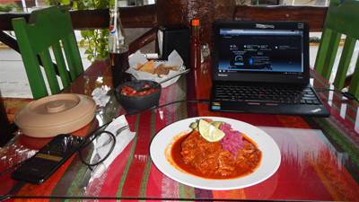 2015-11-09 tl;dr: I visited the Tulum ruins, and then biked to Coba and visited the Coba ruins. And I saw an ugly chicken. The ticket booth to the Tulum Archeological Site opened at 8:00 AM (or so). Look, pictures!One thing about Mexico is that for any attraction there are almost as many workers as guests. Some jobs are interesting (like the guides). Some are normal (like the men sweeping and grooming trails). Some would be downright boring (like the guys who stand at a trail branch and point people one way). I left Tulum with too much water and biked to Coba. I was concerned that I wouldn't be able to find water along the way. It turns out there are little towns every ten kilometers or so, and you can buy bottled water at any of a dozen places in each town. Perhaps this will not be the case when I leave the tourist areas. I had made a reservation for the Sac-Be Hotel in Coba. When will I learn? The reservation disappeared. It's just as well, because I had made the reservation for two days hoping to get work done, but the hotel wifi doesn't work. My cell phone has zero signal in my room. So I decided that I'd continue being lazy as far as my job was concerned and hiked over to the Coba ruins. The jungle here is farther from the coast, and once in the shade it is downright pleasant. Or I'm finally acclimating. Ground temperature is about 24 degrees C, here, I think. This is good, because this hotel has no hot water. Look, too many pictures! |
