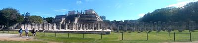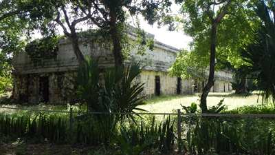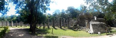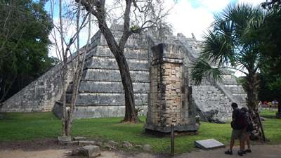 2015-11-12 tl;dr: I visited Chichen Itza. For some reason this hotel bucks the trend and employs too few to serve its guests. Even though it wasn't busy, my first morning at the restaurant it took ninety minutes before I was asked if I wanted to order. (I was working on my laptop, but still.) I swear the coffee here is instant, and the pancakes come out of a box.I stayed two nights so I could get a little caught up on some work. It was tough with the hotel's sketchy internet. Eventually, the common area router stopped working. I asked at the front desk if they could reboot it or something. The guy looked at me and just said, "This is the jungle," and shrugged. Today I finally visited Chichen Itza. These bigger Mexican tourist attractions require two tickets. You pay one price, but are handed two tickets. Then there are two people at the gate with scanners. One will scan each ticket. Mexico. It only takes about an hour to walk around and look at everything, and then it takes another thirty minutes to find your way back to your entrance, for there are multiple entrances, and only the one you entered from is useful to you (unless you feel like walking several kilometers). Archeological zones aren't much for maps or directions. I suspect this is to encourage you to hire a guide. Chichen Itza is completely full of vendors. For the most part they all sell the same things. I suspect they are limited to "authentic" souvenirs, because I never once saw sunglasses for sale, and I could have used some new ones, because I set mine down along the road and biked off without them. A lot of clapping takes place in Chichen Itza. After Chichen Itza I checked out of the hotel and started down the road. My route is somewhat constrained as I need to find a FedEx or DHL in order to mail something to Norfolk. I could either go 100 kilometers completely out of my way, or I could angle toward Campeche 300 kilometers down the road. I could more easily find a normal Correos de Mexico, but those aren't for sending mail you actually want delivered. So I followed a busy, narrow highway for a bit before turning off onto a quiet jungle road. As night approached I ignored the sprinkling rain, even though I could see dark clouds in the distance. So when the rain really started I ended up getting completely soaked as I set up my tent. I had found a woodcutter trail and followed it into the jungle a few dozen yards. I can hear the occasional car on the road, but I can't see the road. |