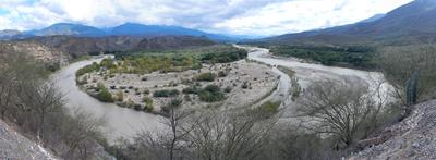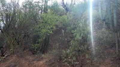 2015-11-27 tl;dr: I am biking through the desert of the Reserva de la biosfera Tehuacan-Cuicatlan with no brakes. Sometimes it seems like everybody here speaks English. After a fruitless search for breakfast, I decided to just eat peanut butter at a table in the common area of the hotel. The university student at the desk asked if he could join me so he could practice his English. Unlike most others, he was learning from an actual teacher (a lady from Canada who spoke little Spanish). I kept talking way too fast for him, but he'd smile and try to fill in the gaps. When I went to a store to get some food for the road, the proprietor was the owner's son and had spent time in San Diego in construction. He said it was all about the money, and he wanted to go back. He ran a fairly large store, and apparently he might make $700 pesos a week ($44 dollars). But working construction he made enough to buy his own house in this town. He also filled me in on the likelihood of a Mexican paying taxes (not very), and how unless you landed a government job, it was almost impossible to not be poor.From Teotitlan de Flores Magon I can go either north or south. My original plan was to turn north and angle toward Acapulco. But everybody (everybody) I described this plan to opined that it was a bad one. Apparently Acapulco isn't a very nice place. South leads to Ouxaca. Everybody (yes, everybody) agreed this was an excellent place to travel. So south I go. I spent some time tweaking my brakes before leaving town. And I immediately discovered I still had no brakes. I could barely slow down. I swung into a dirt driveway so I wouldn't hit one of those cursed speed bumps sending dogs scurrying. It turns out my brake pads no longer actually have pads. They are worn down to metal both front and back. They are so thin the brake mechanism simply can't stretch enough to lock onto the disk. Of course I failed to bring spares. So I did the only logical thing: I placed all four "pads" on the rear tire, leaving the front completely brakeless. Now the rear works, even if it's metal on metal. Such squealing. Also the brake cable is slightly frayed, so I can't take the risk of ever building up too much speed and then assuming I can stop myself. Fortunately I spent most of today climbing upward. I followed Highway 135, which loosely follows the lamely named Rio Grande. This area is desert completely covered in cactus and hardy brushes. There are irrigation channels to allow the growing of corn and lemons and other fruits, but it's mostly just cactus. The road cuts through parts of Reserva de la biosfera Tehuacan-Cuicatlan, so there are long stretches where Mexicans don't actually live. Where Mexicans do live they sell gasoline. For whatever reason, the only Pemex along this road is closed, so the locals have picked up the slack. Where people live you will find "gas stations" which is just a collection of a dozen (or more for a big station) three- and five-gallon plastic jugs filled with fuel. I saw no jug that was still red, but every single one was faded to a very light orange. Tonight I am once again attempting to sleep with no tent. Given that I had to be careful of the cactus, I may just not get rained on. The sky does flare up with occasional flashes of lightning, but that's from the jungle on the other side of the mountains. While eating my dinner of tuna fish and Mexican-Ritz knockoff crackers I realized I am so camping in the Southern Mexico desert. Oh my god, must Mexicans always play loud music at night? I'm in the middle of the freaking desert listening to a tuba. I can't even imagine how many kilometers away it is. It's not even club music. It's like they are piping some typical Mexican radio station through a broadcast speaker. Actually, that is exactly what they are doing. |