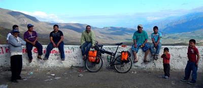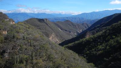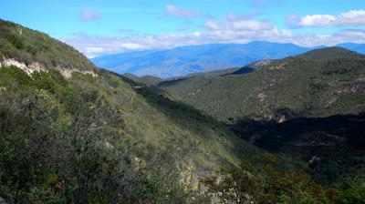 2015-11-28 tl;dr: I climbed from the desert into the mountains and back down to near Oaxaca with my cobbled brakes. I made my way out to the road around 6 AM. Eight hours, forty kilometers and three ibuprofen later I topped out at 2300 meters. I left the desert behind and was again into pine trees. Now to see how well my cobbled brakes would work. They worked, although it wasn't much fun.This area doesn't have as many small villages, but you can still find places to buy water occassionally. About half way up the mountain there is a sort of rest area. A small caravan of trucks had taken it over and a group of people were preparing for lunch (or something; I wasn't clear on that). I stopped to eat my own breakfast. They tried to load me down with oranges, apples and those little bananas ("the fruit of Mexico"). They also filled my water bottle from a giant water tank in one of the trucks. I was suspicious of it all, but I ate and drank. Let's see how tough my stomach is. They wouldn't accept any money, even though I pointed out that I was a tourist here to spend money. In the afternoon I stopped at a roadside shack where two women were cooking something over a wood fire. I decided I could probably only get so sick in one day. I typed "whatever you are serving. I'm not picky" into Google Translate. I received some sort of baked flour tortilla folded over melted cheese with some sort of marinara on the side. It was surprisingly good. I've seen more big pickup trucks on this road than I've seen so far in Mexico. It may be a function of the agriculture in this area. Or it may be because there are more tourists here. I dropped out of the mountains in only about an hour. At this point I was in dense urban Mexico again, but I was still some twenty kilometers from the hotels of Oaxaca, and it was getting dark, and traffic was horrible. I peddled until I found a motel. $250 pesos with hot water. I went next door to the Oxxo to buy water and junk food. There was a black American guy named Steven there who asked how long I've lived here. He'd just gotten out of the military and was planning on buying a house in Oaxaca. Apparently a lot of Americans live in this area, and there's a town farther west where Germans live. The weather right here (which is different than the weather thirty kilometers away) reminds me of southern California, so I can see a little of the appeal. |