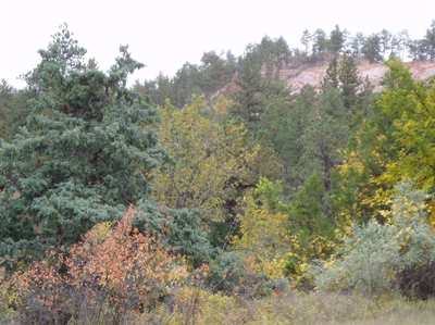 2005-10-04 I awoke to find that the tire with the very slow leak was now completely flat, courtesy of a small screw. I never did find the handle to the jack and so was forced to use a can opener in its place (and it actually worked). As I put on the spare the wind filled every crevice of my being with cold dust and sand. I drove back to Scottsbluff to get the tire fixed. From Scottsbluff I headed North on 71, cut over to 29 on some county road, and continued North to Agate Fossil Beds National Monument. An interesting stop--local fossils and a little local history. I kept driving North past Harrison out into the Oglala National Grassland, which eventually turned into the Buffalo Gap National Grassland as I meandered further North into South Dakota. I don't know why, but I enjoyed driving across miles and miles of nothing but rolling prairie. (There were cows, too, of course.) I bet it would be a real spectacular drive in the spring when the grass is green. Much of the view was blocked by a steadily increasing fog, however, that turned to a light rain and then to a heavy rain and then to (if my ears aren't deceiving me) sleet as the day progressed. Eventually I got back on Highway 71, connected with 385 and found myself at Wind Cave National Park. This park protects a stretch of prairie with all types of critters on it, including buffalo, pronghorn and prairie dogs, all of which I saw. I took the Wind Cave tour. Not the most awesome cave tour ever, but interesting all the same. From Wind Cave I kept moving North on 385 until I arrived in the Northern part of the Black Hills where I AM now parked. NOAA is reporting a winter storm warning and predicts up to ten inches of snow by tomorrow. Because of this, I decided not to place myself too far off a main route. There's a good chance I may be stuck here tomorrow. But after a few days it's supposed to warm up again, so I shouldn't be stuck here forever. Two weeks ago I was sweating under a canopy of mosquitoes, and now I'm camping through a snow storm. |