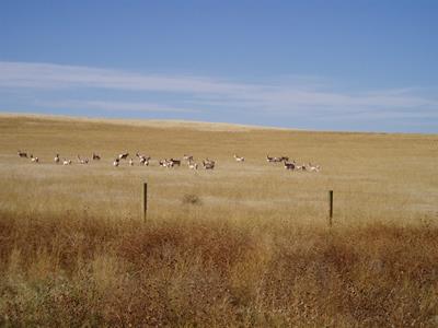 2005-10-08 I left the Black Hills around noon with some sadness. I'm not sure why, but I have a real fondness for the place. I drove 385 into Lead (pronounced Leed), took 85 south into Newcastle, Wyoming. From there I headed West on 450 and 397, cut down to Casper on I25, and continued West on 20/26. On 450 and 387 I saw hundreds of pronghorn antelope (once a herd of about 40 and again a herd of over 120), dozens of white-tailed deer, several snakes, and about a thousand bunnies in various stages of annihilation. Sometimes there would be herds of sheep. It's easy to distinguish between pronghorn and sheep at a distance, because the sheep are more round, and, more telling, every last sheep in a huge herd is always facing the same direction. For the most part, after leaving the Black Hills, I traversed nothing but grassland. Some of it was flat, but most sported a topography similar to the Black Hills. I wonder why no trees grow here? In places you can drive for miles and miles without spotting a single tree. There's not a lot here in Wyoming. If you look at a map, the space between the towns is just that, space. I stopped by Hell's Half Acre, which was closed. You could still peek over the fence into the depths of this badlands-like formation, which is more like 300 acres altogether. I have also conceded that my motor-stove just doesn't work. I had rigged up a small holder which allowed me to place canned food on top of the engine with the goal of having hot food after a couple hours of driving. After a good six hours of driving, I was still eating cold vegetable soup for dinner. |