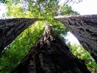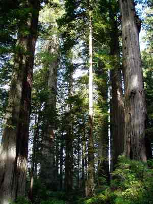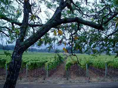 2005-10-14 I plugged back into 101, today, and drove South through California. This stretch is where the redwoods are. (It's also where the elk are, but I'm growing weary of that particular critter. They're like the alligators of Florida, insomuch as they're everywhere.) The redwood are spread throughout a number of State Parks as well as Redwood National Park, which I visited. I undertook a short hike to study the giants up close. What can I say? Redwoods are big--really, really big. Driving South and then leaving 101 to find a place to hole up for the night, I somehow found myself in the Napa Valley. Here you can see grape vines--a whole lot of grape vines. |