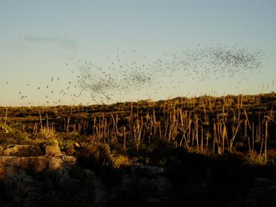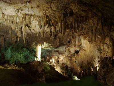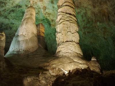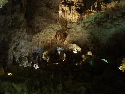2005-10-20 The caves are immense. Huge. Insanely large. If the base of the caverns weren't cluttered with calcite formations, a football field with bleachers could be erected. Possibly several. I couldn't possibly describe the caverns accurately, so if you're interested look it up on the web. I took many pictures. I think I've finally got the knack for cave photography. The secret is to not use a flash. The mouth of the cave is the size of a house. Shortly before dusk, hundreds of swallows gather in the air above the cave in preparation for a good night's sleep. But, before they can enter the cave, they must wait while three-hundred thousand bats pour out like a thick smoke. The swallows become irate and bicker incessantly, but whether because of their delay or the awful stench accompanying the bats, I don't know. After about fifteen minutes, the colony of bats evaporates into the distance, allowing the flock of swallows to nest. This is followed by the horde of tourists migrating out of the park. Did you know that many national park workers can only work at a specific location for so many hours before being transferred. This explains the on-location living quarters I always see. |